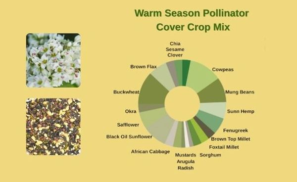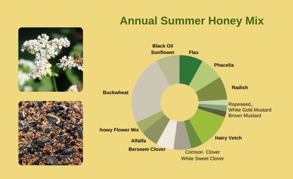 "For every yield-robbing pest, there are 1,700 other insects that are beneficial. This diverse mix is designed to attract those insects and serve as an excellent food source throughout the summer. The variety of different colors in flowers will attract many different insects benefiting both the plant and soil. This unique blend of native flowers, annual grains and flowering brassicas will flower all summer long.